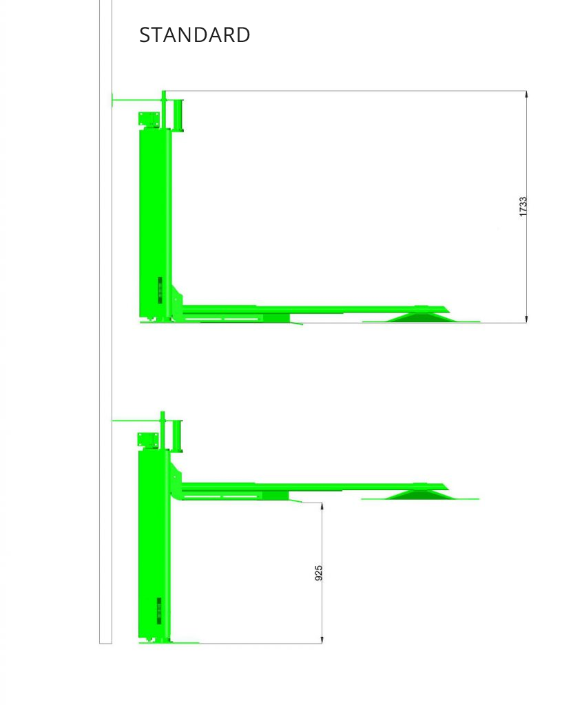 Standard: increase of height: 925 mm